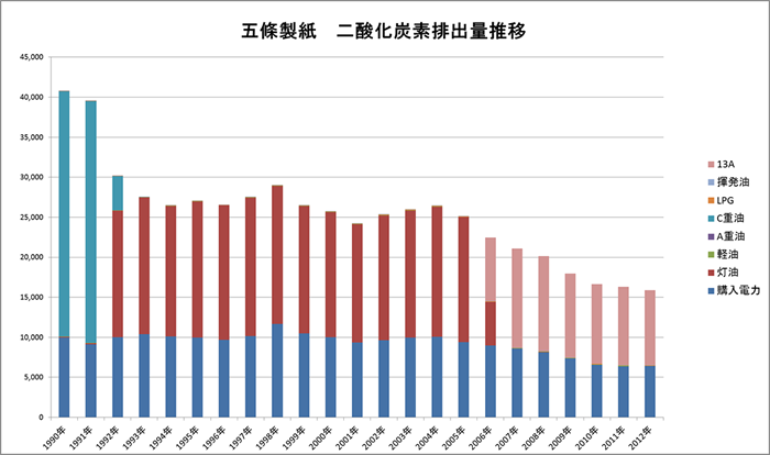 五條製紙は、今後もより環境負荷の掛からない設備等を積極的に検討するとともに、社内の省エネ活動を強化し、社会に貢献できるよう努力して行きます。